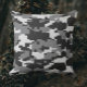 Introducing our Black and Grey Camo Pattern Throw Pillow. This design features a modern camouflage pattern with varying shades of black and grey, creating a dynamic and stylish look. The intricate detailing of the camo pattern adds depth and interest, making it a striking focal point in any room. The reverse side is a sleek solid black, providing a versatile and sophisticated contrast. Perfect for adding a contemporary edge to your home décor.