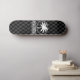 The Nothing Personal Logo Is a soft Vaporwave inspired design with a palm tree and the words "Nothing Personal" underneath. This deck features a black and grey or grey if you're British chequerboard design.