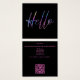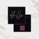 An elegant business card featuring the word "Hello" on the front in holographic glitter with space on the back for your name and contact information. This design includes a QR code on the back.