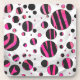 Black and Hot Pink Piloka Dot Zebra Coaster