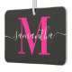 Black and Hot Pink Signature Modern Monogram Photo Car Air Freshener
