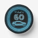 Black and Neon Blue Car with Custom Age Male Party Paper Plate