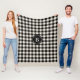 Black and Off-White Plaid Pattern and Monogram Fleece Blanket