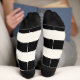 A classic pattern of black and off-white rugby stripes in referree style make a fun addition to your wardrobe. Personaize the monogram on the right sock with your monogram initial.