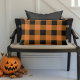 Black and Orange Buffalo Plaid Autumn Halloween Lumbar Cushion