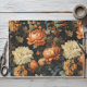 Elegant vintage-inspired floral tissue paper featuring bold orange and ivory blooms on a rich black background. Perfect for wrapping gifts, crafting, decoupage, or adding a touch of autumn charm to party favours and seasonal projects. A beautiful choice for fall, Halloween, or Thanksgiving celebrations.