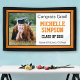 Hang this Black and Orange Grad Photo Banner to celebrate your high school or college graduate. Personalise with your graduate's photograph, full name, class year, and school. It features a black and orange border surrounding your grad's picture, their name in orange and 'Congrats Grad!', class year, and school in black.