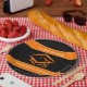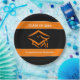 Simple yet stunning graduation design features an orange mortarboard graduation cap in the centre. Above and below the graduation cap are thick orange lines with white trim. Inside the top line is customisable text that says Class Of 20XX where you can add the correct graduation class year. Inside the lower line is customisable text in white font there you can add the graduates name, etc. Matching invitations and favours also available!