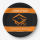 Black and Orange Mortarboard Graduation Party Paper Plate