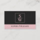 A simple business card in black and pink with a square frame and monogram. You can change the colours of the background and the letters