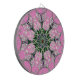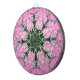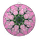 This artwork features a central, symmetrical, medallion-like design, incorporating floral and geometric elements that radiate outwards. The composition is balanced and visually engaging, drawing the eye to the intricate pattern. The background is a solid, bright pink, making the design pop.