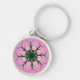 Black and Pink Cute Floral Fashion Motif Monogram Key Ring