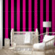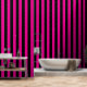 A black and bright pink fuchsia ultra wide four inch evenly striped wallpaper.