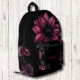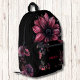 Black and Pink Gothic Flowers Modern Monogram Printed Backpack