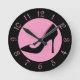 For fashion lovers, this retro style clock is printed with a high heel shoe in a pink and black colour scheme.