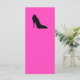Black shape of a single high-heeled shoe against pretty bright pink background.