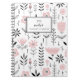 Whimsical and Scandinavian-inspired notebook. It features a black and pink floral pattern. Personalise by adding your name or short phrase. This floral notebook will be perfect as a personalised gift. Matching items are available.