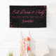Elegant girl birthday party banner featuring a stylish black background that can be changed to any colour, with the words "eat, drink and party" in a bright pink script and a simple text template.