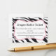 Black and Pink Zebra Diaper Raffle Ticket Enclosure Card