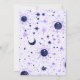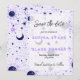 The text on the card is artfully crafted in a mix of simple print, decorative print, and elaborate script, adding a touch of sophistication and whimsy. The colours of the text, in black and purple, complement the celestial theme perfectly, creating a stunning visual contrast that's sure to captivate your guests.