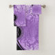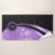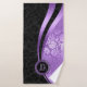 Elegant black and purple tones floral damasks metallic look with customisable monogram and decorative stripes.