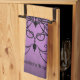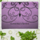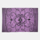 A hearts and swirls design in black on a purple background. Shown here on a pretty dish towel. Add your name to it or remove the text.