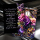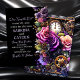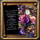 A gorgeous purple, black and gold floral steampunk wedding invitation. The front is adorned with beautiful purple roses, gold and copper gears and key, butterflies and flowers.