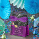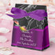 Chic elegant pretty modern alternative black and purple vintage damask and colourful butterflies wedding favour box, easily personalise the bride and grooms names to the templates to create a unique stylish retro custom favour box for your special occasions and celebrations. Visit the PERSONALIZED_ WEDDINGS STORE for matching coordinated wedding sets.