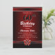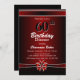 A red and black 60th birthday dinner party invitation featuring white text and a red and white ribbon and bow. Replace the details on this invitation with your own to create the perfect birthday party invitation for your event.