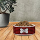 Pamper your precious pet with this personalised classic black and red buffalo check patterned pet bowl! Personalise it with your dog's name in the bone.