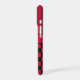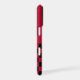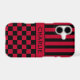 Customise this iPhone 17 case with black and red stripes on the top half and black and red chequered pattern on the bottom half with your name in a modern CAP font in the middle in black on red. It's preppy, trendy and bold - definitely cool!