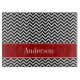A modern black and white chevron pattern with a red stripe. Preppy and cute. Easily personalise with your name!