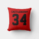 Add a name and number(s) to personalise this custom double-sided red and black sports jersey inspired accent pillow. It is an excellent gift for a sports fan or athlete. The options to change the colour and font sizes are available.