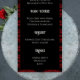 Introducing black and red floral gothic dark elegant wedding menu – the perfect way to set the tone for your big day. Featuring a striking black and red floral design, this invitation exudes sophistication and elegance, with a touch of gothic flair. The intricate floral pattern adds a touch of romance, making it the perfect choice for an elegant and unique non traditional wedding. This wedding menu card features the list of dishes, your couple's names, date of the wedding, etc.