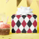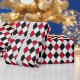 Bold black and red harlequin diamond-patterned wrapping paper.