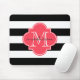 Black and Red Nautical Stripes Custom Monogram Mouse Pad
