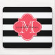 Add some style to your work or home office with this chic black and white stripes with a custom personalised red quatrefoil monogram mouse pad. To change the fonts or font colours, click the "Customise It" button below the product image.