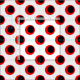 This striking geometric pattern features bold black circles outlined in vivid red, arranged in a repeating polka dot layout on a crisp white background. The strong contrast between red, black, and white creates a dramatic, eye-catching effect that feels both retro and modern. The layered look of the dots adds depth and dimension, giving the design a playful yet powerful presence. With its high-contrast palette and rhythmic repetition, this polka dot pattern captures attention and delivers timeless graphic style.