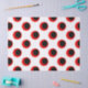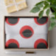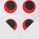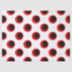This striking geometric pattern features bold black circles outlined in vivid red, arranged in a repeating polka dot layout on a crisp white background. The strong contrast between red, black, and white creates a dramatic, eye-catching effect that feels both retro and modern. The layered look of the dots adds depth and dimension, giving the design a playful yet powerful presence. With its high-contrast palette and rhythmic repetition, this polka dot pattern captures attention and delivers timeless graphic style.