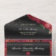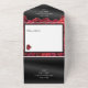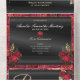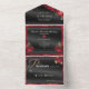 Rosas Rojas con Dorado y Fondo Negro. No necesita comprar sobres para sus invitaciones. Solo se cierran con los puntitos incluidos, y se mandan. Sus invitados cortan la parte de abajo de la invitacion, y se la regresan a usted. Elegant Quinceañera All in One Invitations. Red, black and gold invitations for your quince años. Simply edit, and personalise the information with your own, and you will have your own custom quince invitations of red roses. These are money saving invitations with RSVP included, and no need for envelopes. Perfect for your Quince años party!