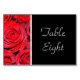 Bright red roses dress up the left side of this wedding table card. Your text is on a dramatic black background, and is separated from the rose image by a silver "ribbon". **Please note - the image is printed on the card, which contains no actual fabric or ribbon.** Matching invitations and other products are available in my store.