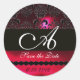 BLACK AND RED RUBY DAMASK MONOGRAM,burgundy Classic Round Sticker