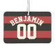 Black and Red Rugby Stripes Name Number Car Air Freshener