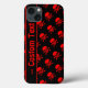 Skull and crossbones pattern phone case in black and red with editable text field. Available for Galaxy, iPhone, iPad and other popular smartphone and tablet styles.