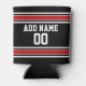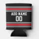 Black and Red Sports Jersey Custom Name Number Can Cooler