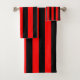 Alternating black and red vertical stripes are tiled across this towel set to add style to your bath decor! A uniquely stylish way to start your day!