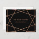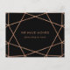 This modern change of address postcard says "we have moved", but you can change the wording using the template if you wish. A faux rose gold look geometric pattern decorates a rich, dark black background. The back of the postcard has room for your new address information. A perfect way to let friends, families and clients know that you have moved.