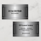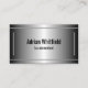 Silver Framed Bars Border © Sunny Mars Designs. This silver metallic horizontal accounting business card template features a silver and black gradient metallic background bordered by four silver and black bars. Personalise it by adding your own name and business details on the template on this product page or change it further by clicking the 'customise it' button.