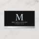Elegant stylish design featuring monogram, name and details in silver professional serif font style with silver bottom border on black background.