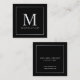 Elegant stylish design featuring monogram, name and details in silver professional font style with silver square border on black background.